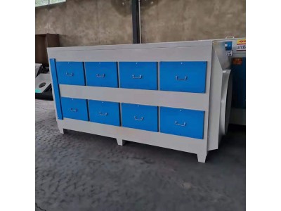 活性炭废气净化器用于净化被污染的废气,活性炭废气净化器主要构成有:机箱外壳、过滤段、风道设计、电机、电源
